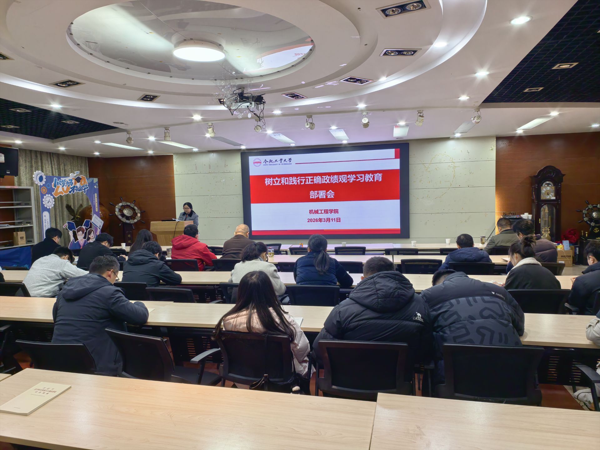 3月11日下午,机械工程学院在格物楼316会议室召开树立和践行正确政绩观学习教育部署会,深入学习贯彻习近平总书记关于树立和践行正确政绩观学习教育的重要讲话和重要指示精神,学习传达学校启动部署会精神,部署安排学院学习教育工作。会议由学院党委书记祖磊主持,学院处级领导干部、党委委员、基层党支部书记、科级干部参加部署会。